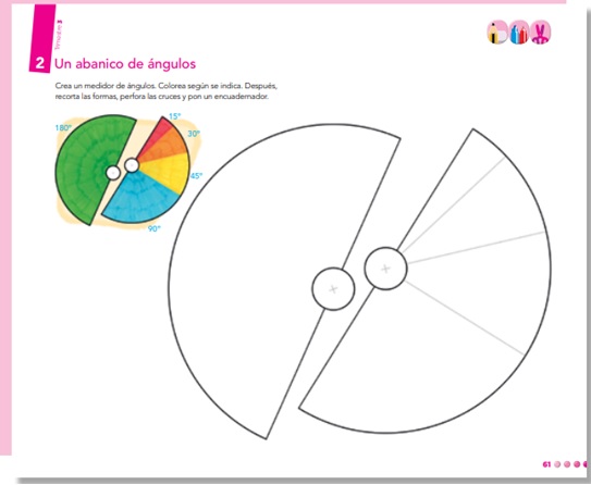 Después de reproducir el vídeo, vais a realizar la lámina de plástica. Se propone crear un medidor de ángulos. Si no disponéis de un encuadernador, podéis utilizar (con ayuda de un adulto) otra cosa similar. Colorear con rotuladores o pinturas.