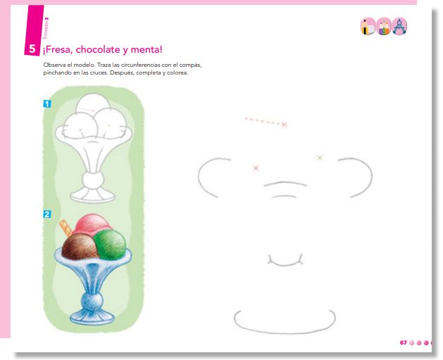 correspondientes a las bolas de helado; para ello debéis apoyar la punta en la señal representada con una cruz y