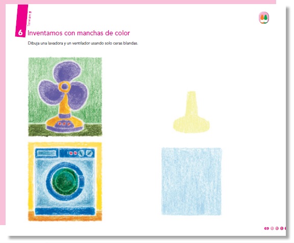 En la tarea de hoy, tendrás que dibujar un ventilador y una lavadora con ceras blandas. Te propongo que primero dibujes el contorno fijándote en el modelo, después colorea. Teniendo en cuenta que posiblemente no tengas ceras blandas en casa, puedes realizar los dibujos con el material que te resulte más cómodo.